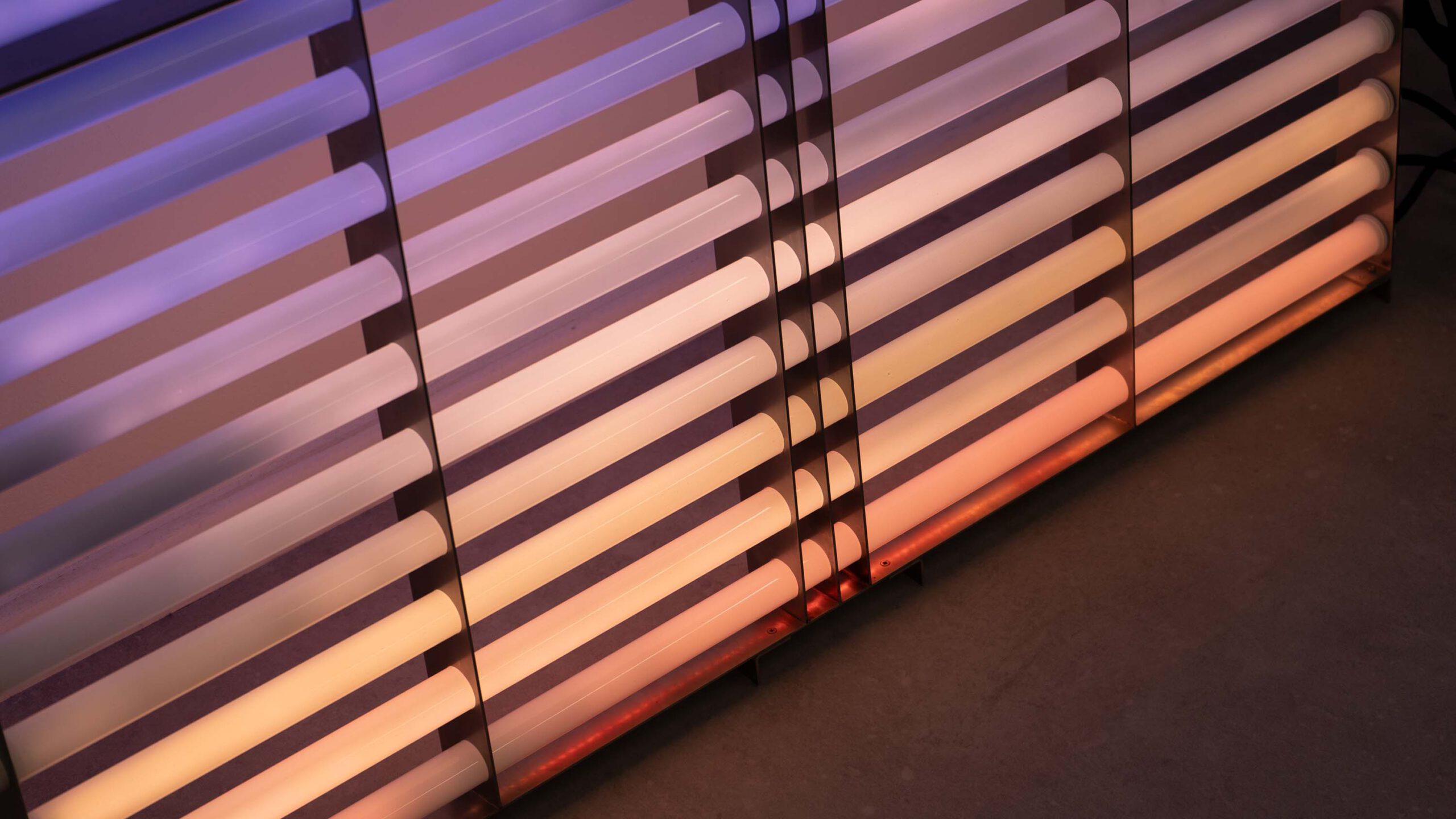 The light installation What is for Sure explores the relationship between space and time. By reinterpreting and manipulating the seemingly natural and chronological rhythm of light, the artwork addresses the phenomenon of chromatic changes in the sky caused by atmospheric scattering.