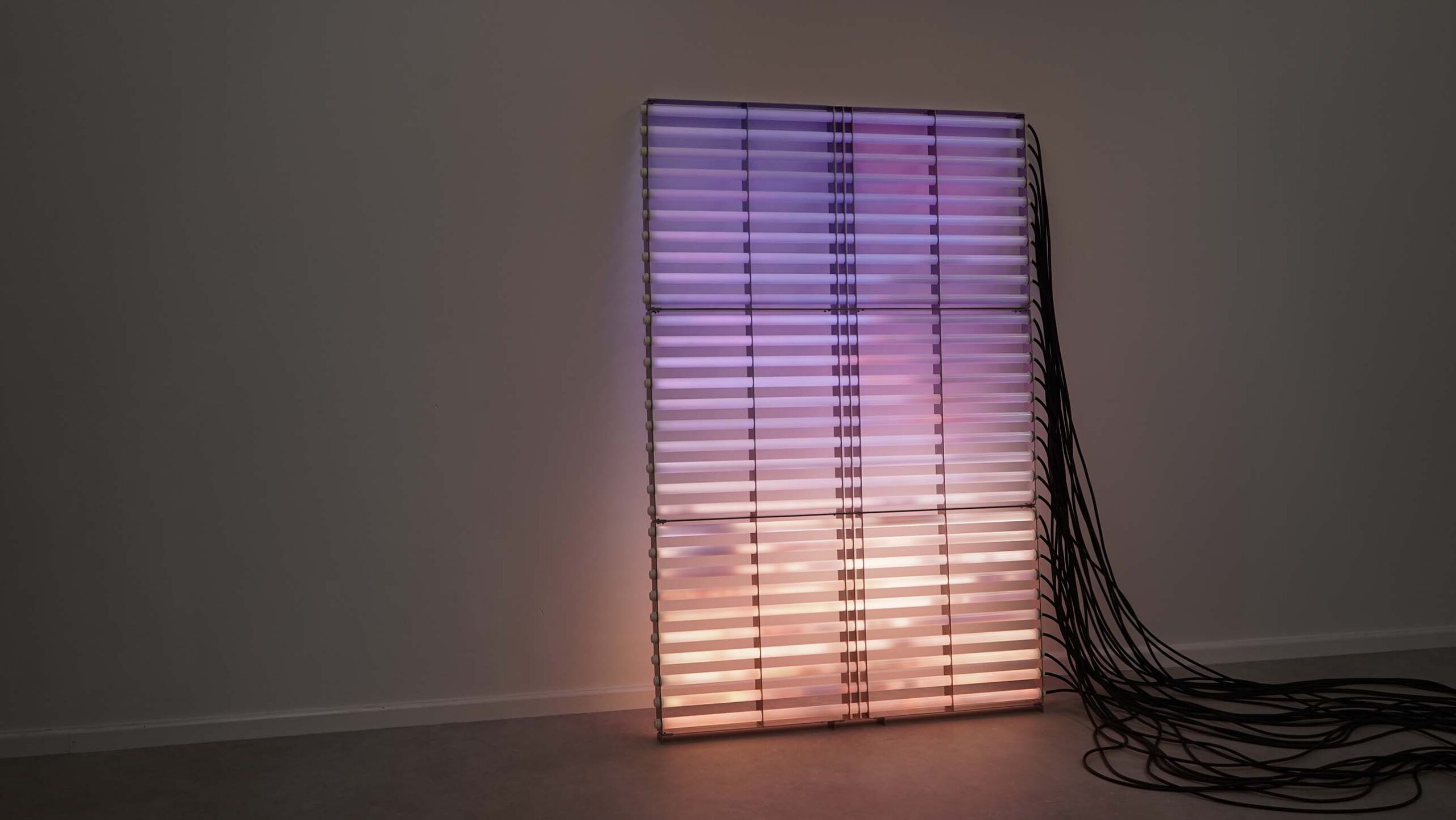 Like the view through a window to the outside world, a series of visual light structures mimic the rhythm and duration of daylight phases through subtle variations in color and brightness. However, this natural cycle is altered between sunrise and sunset, showing a mixture of video sequences capturing natural scenes and artificially generated representations created by artificial intelligence. The fundamental nature of the sun’s course and our perception of time once considered reliable, now appears uncertain, raising the question of what we can rely on in a world where AI is increasingly intertwined with our daily lives.